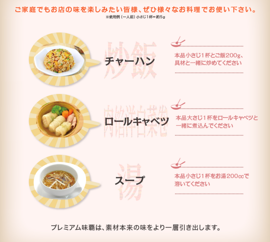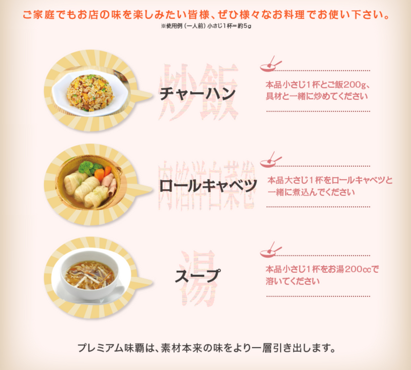 The addition of whole chicken extract and natural yeast extract brings out the authentic flavor of the ingredients without using any artificial seasonings, making it a truly premium all-purpose seasoning.