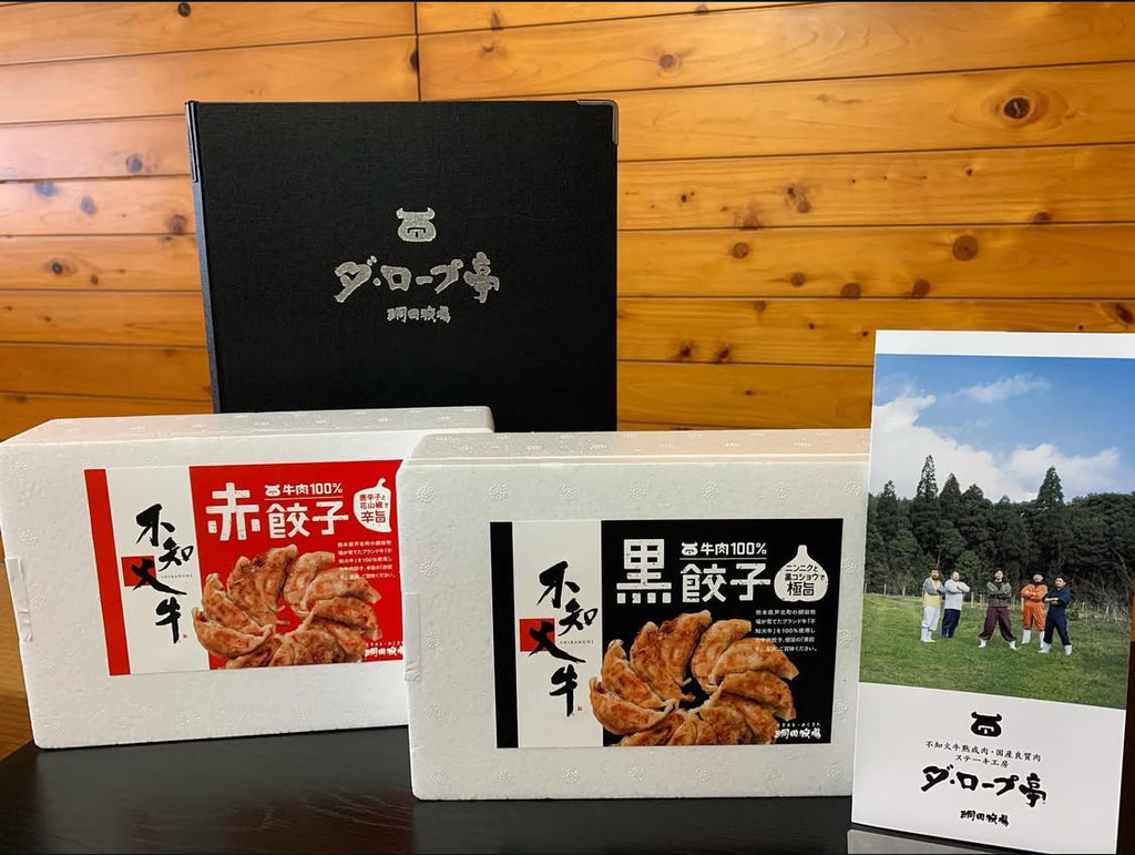 This special gyoza set comes from a renowned steakhouse in Ashikita Town, Kumamoto Prefecture, Japan, where Wagyu cattle are raised on the restaurant's own farm for superior quality and flavor.