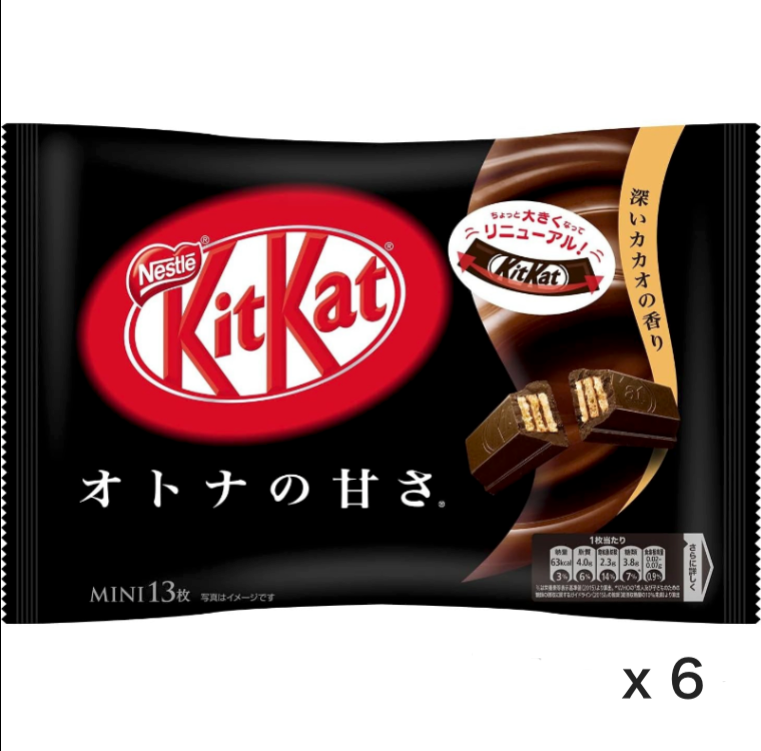 Savor the rich and sophisticated taste of KitKat Mini Otona no Amasa Cacao Flavor. Specially crafted for adult palates, this unique KitKat offers a deep, mildly sweet chocolate flavor, with a higher cacao content that brings out the authentic taste of cocoa. Each mini bar features crisp, light wafers enveloped in smooth dark chocolate, striking the perfect balance between bitterness and sweetness. With 11 individually wrapped bars, it’s ideal for a satisfying snack or sharing with friends who appreciate a refined chocolate experience.