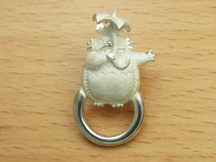 Inspired by My Neighbor Totoro (Japanese title: Tonari no Totoro), one of Studio Ghibli’s most beloved animated films, this charming silver pin badge features Totoro holding an umbrella.