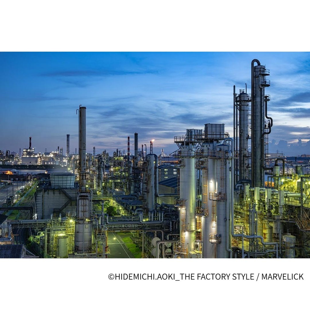 In 2008, Japan began promoting industrial areas as tourism destinations. Around the same time, Hidemichi Aoki introduced his visionary idea of turning factory night views into an art form. His first calendar, “Dramatic Factory Nights” (2010), sold out immediately — sparking Japan’s fascination with the glowing beauty of factories at night. Two years later, the “THE FACTORY STYLE” brand was born, and it continues to be a beloved art series across Japan.