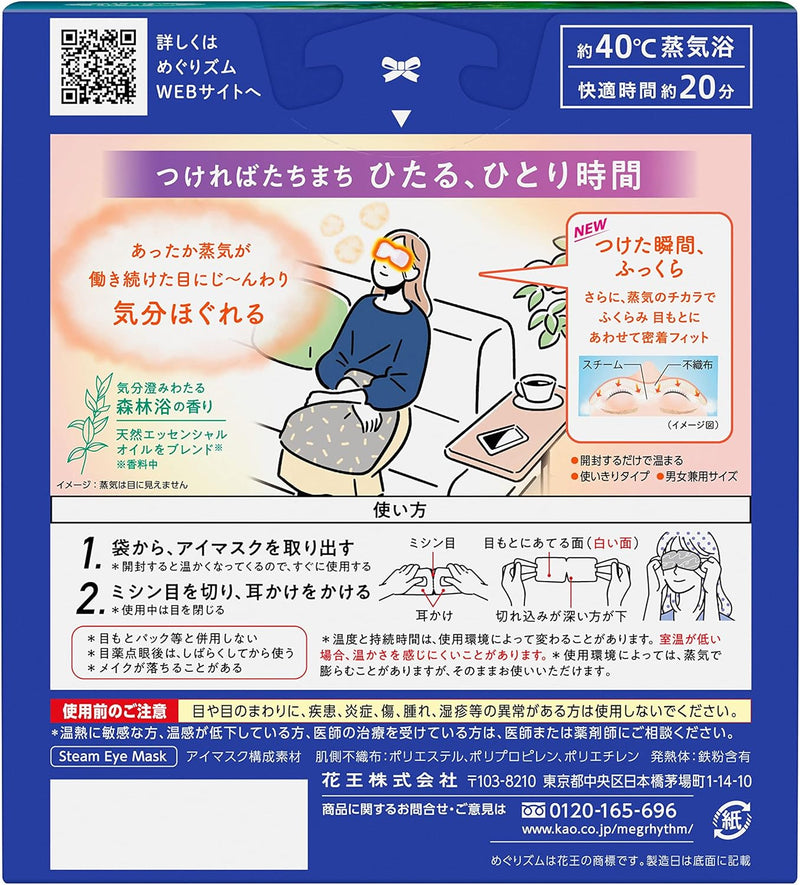 MegRhythm Steam Warm Eye Mask Forest Scent 16 Sheets for Tired Eyes Stress Relief JAPAN - Tokyo Sakura Mall