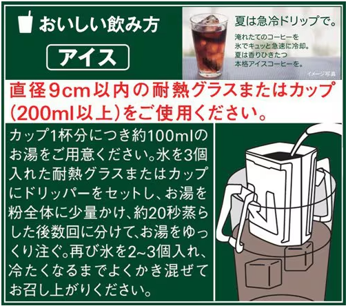 *Also, in summer it can be served on ice. Please prepare in advance a heat-resistant glass or cup (at least 200 ml) with a diameter of no more than 9 cm and approximately 100 ml of hot water.