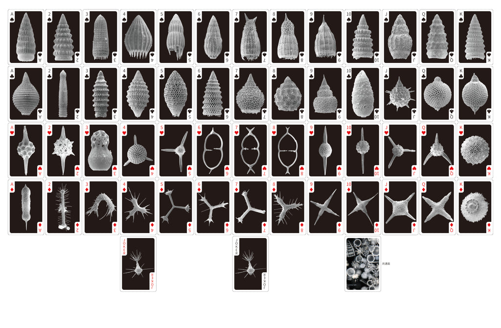 While this deck can be used as regular playing cards (52 cards + 2 jokers), it also doubles as a visual encyclopedia, allowing you to appreciate the delicate and artistic forms of radiolarians.