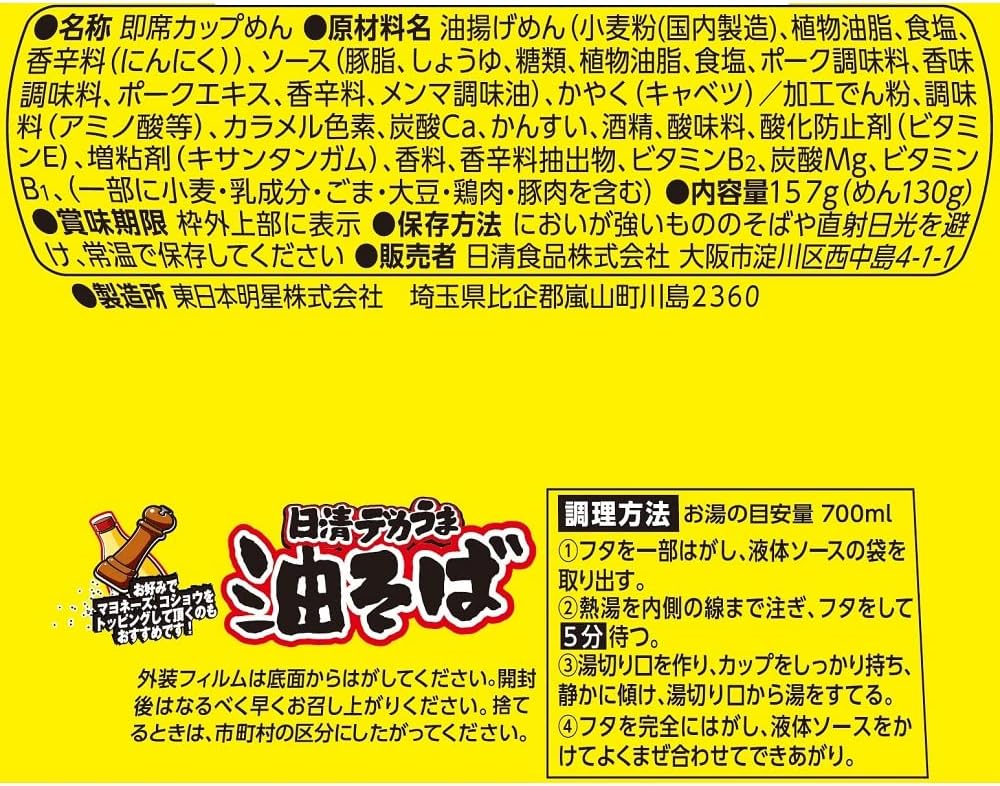 Nissin Foods Nissin Dekauma Abura-Soba Istant Noodle 157g x 12 Pack Japan - Tokyo Sakura Mall