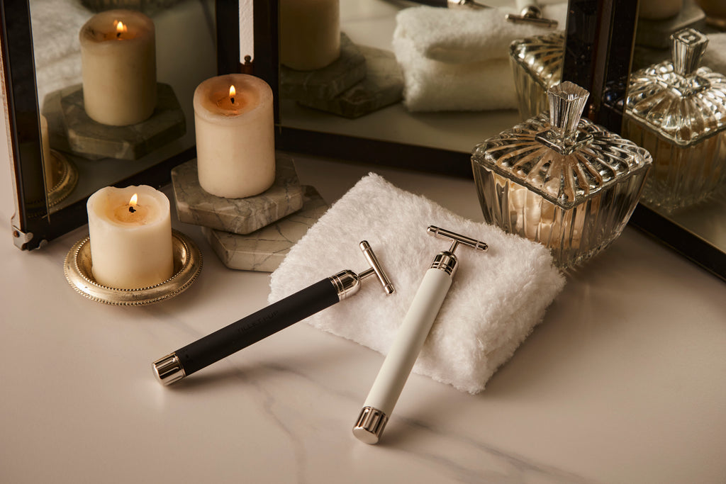The T-shaped head, whose size is suitable for the care of small areas, is platinum-plated and is expected to improve skin problems by activating metabolism and skin cells through platinum's weak electric current and by its bactericidal, anti-inflammatory and sterilising effects.