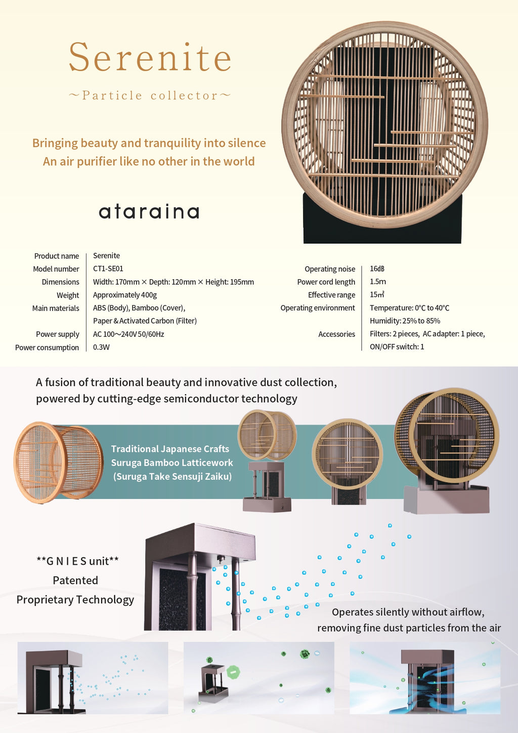 Using the traditional Japanese craft "Suruga Bamboo Sensuji Work" and "Electrostatic Activated Carbon Filter",