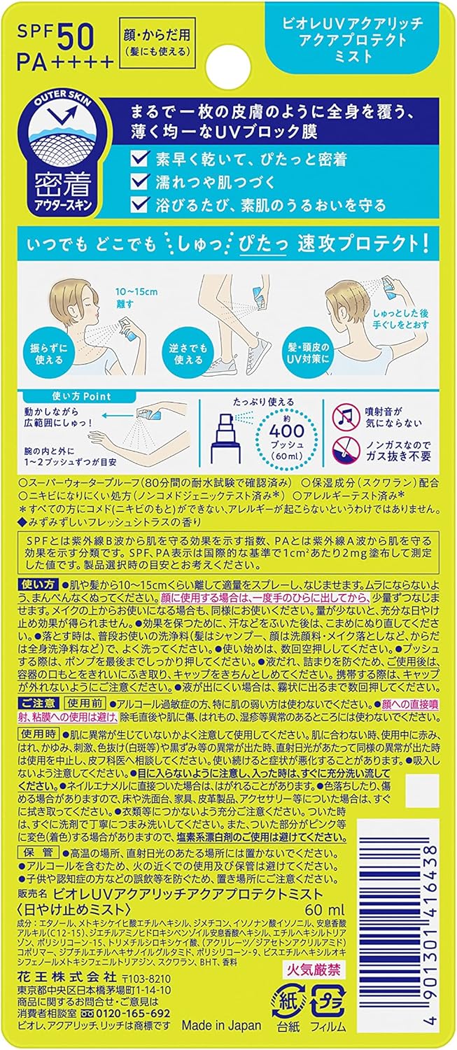 Biore UV Aqua Rich Aqua Protect Mist 60ml Made in JAPAN - Tokyo Sakura Mall
