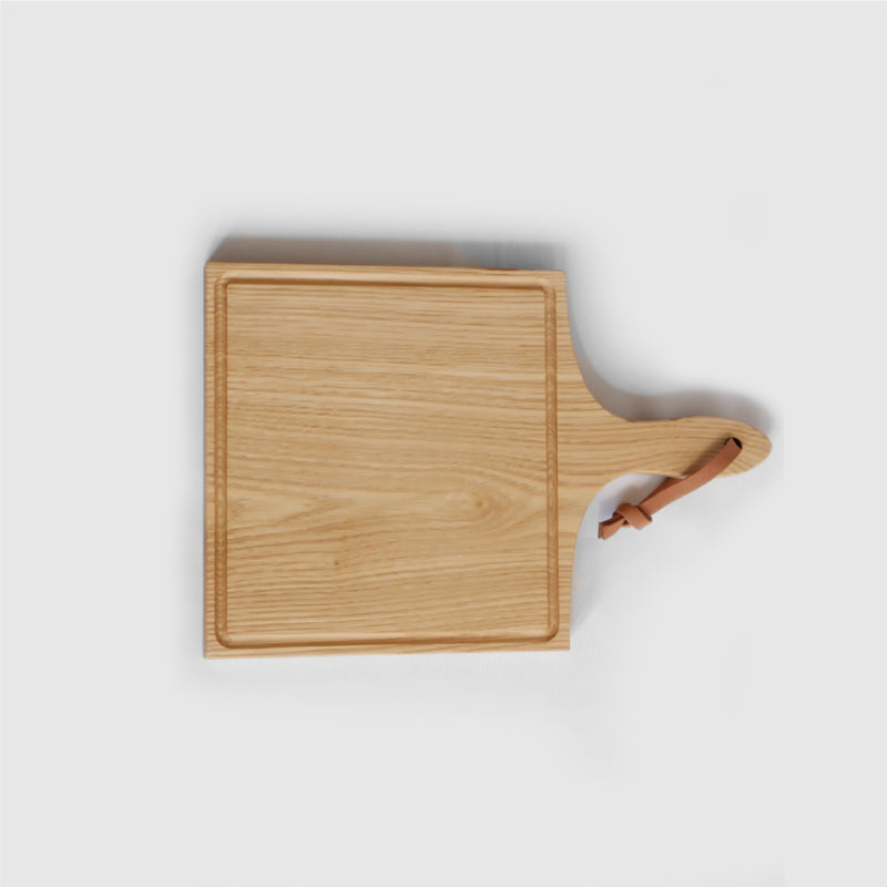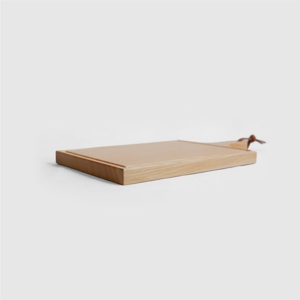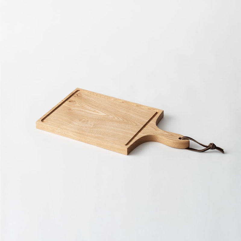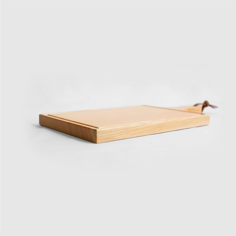 Crafted from over 100-year-old chestnut wood, this cutting board is designed for superior stability and durability. Chestnut’s natural water resistance has made it a trusted material for kitchens and baths in Japan for centuries. With a thick and sturdy surface, it allows for effortless cutting of vegetables, meats, and more. The board’s wide surface and ergonomic handle make it easy to transport even heavier ingredients. A groove along the edges helps catch meat juices and other liquids, keeping your countertop clean. It doubles as an elegant serving platter, perfect for home use or outdoor dining.