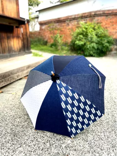 This parasol was produced by effectively utilizing denim fabrics that would otherwise have been discarded by denim production factories in Okayama Prefecture Japan.