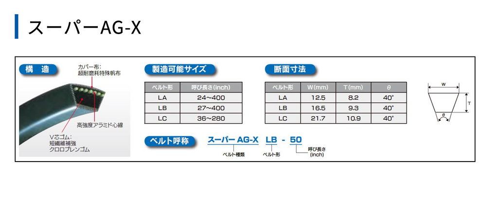Developed using Mitsuboshi's decades of expertise and technical know-how, the Super AG-X is trusted across the agricultural industry as the gold standard for V-belts.