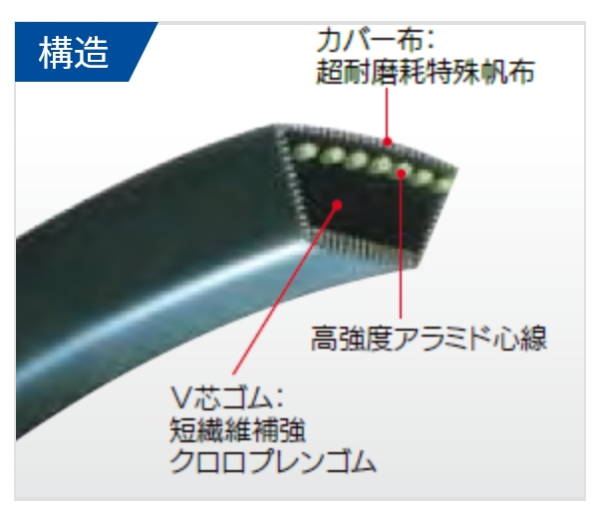 The Super AG-X V-Belt is crafted using specially designed, high-durability canvas, which significantly reduces wear and tear, even during extended use. This advanced abrasion resistance prolongs the belt’s lifespan, reducing the frequency of replacements and helping to lower overall maintenance costs. -