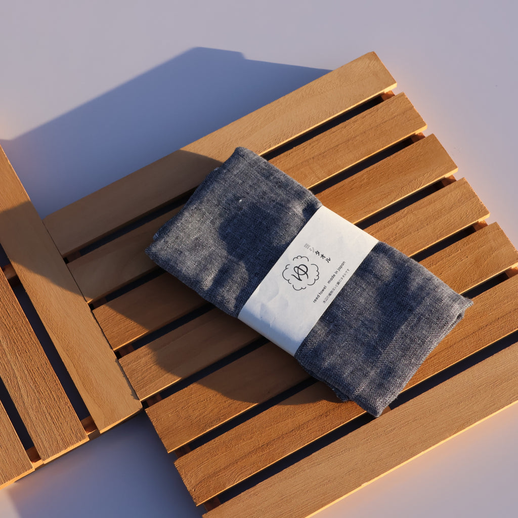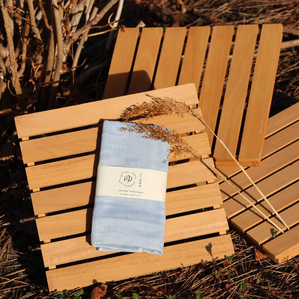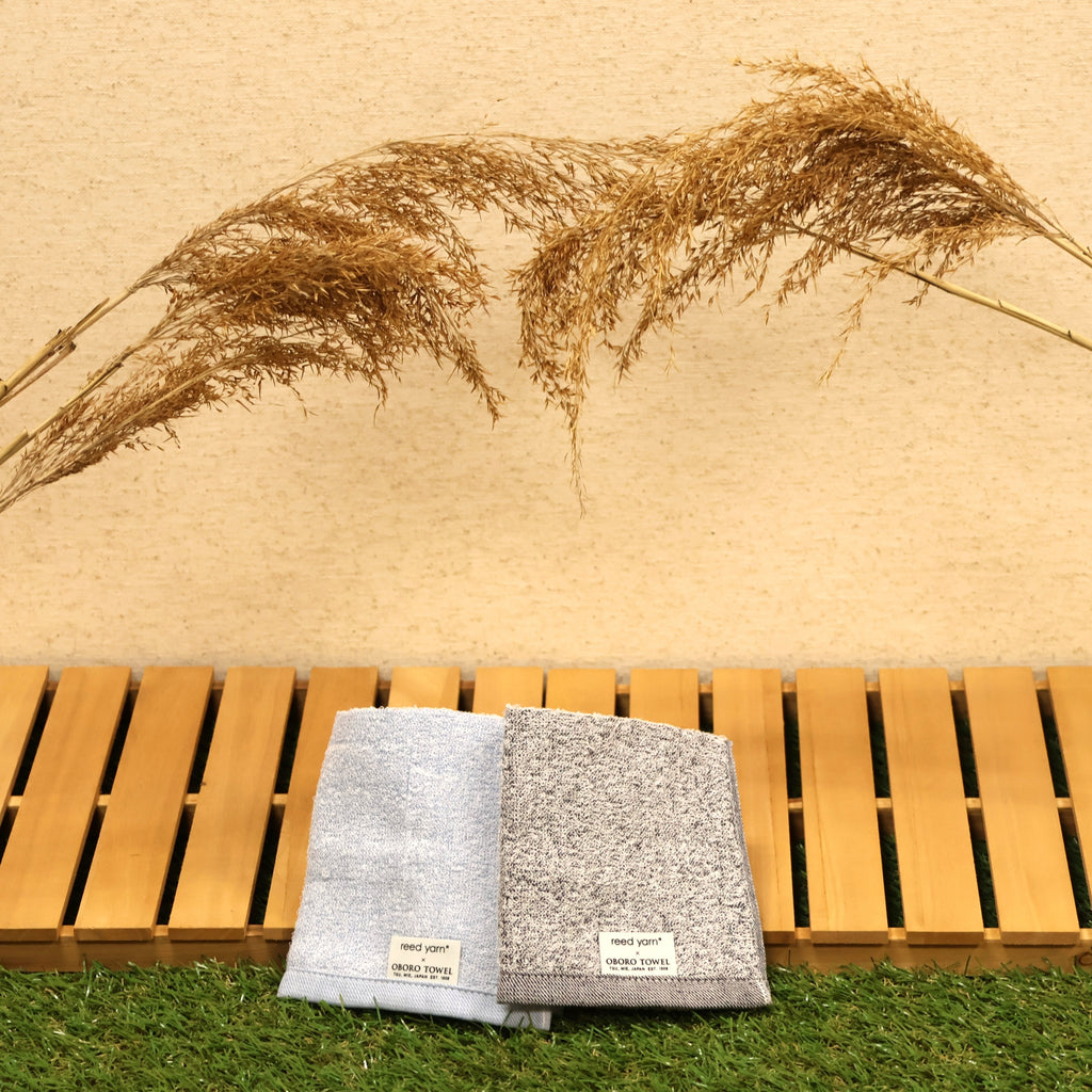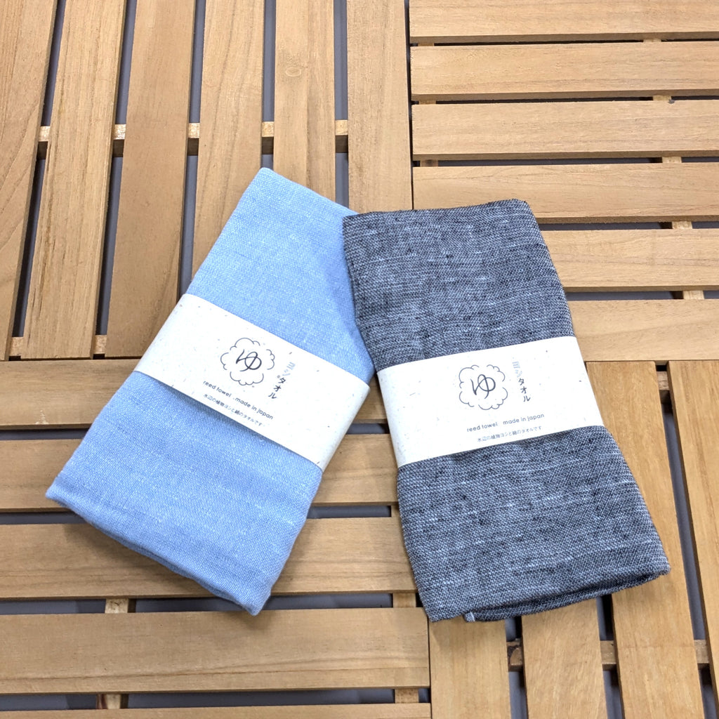This towel is made using a unique blend of 30% Japanese reed fiber (Yoshi) and 70% cotton, woven together to create a soft and functional fabric.