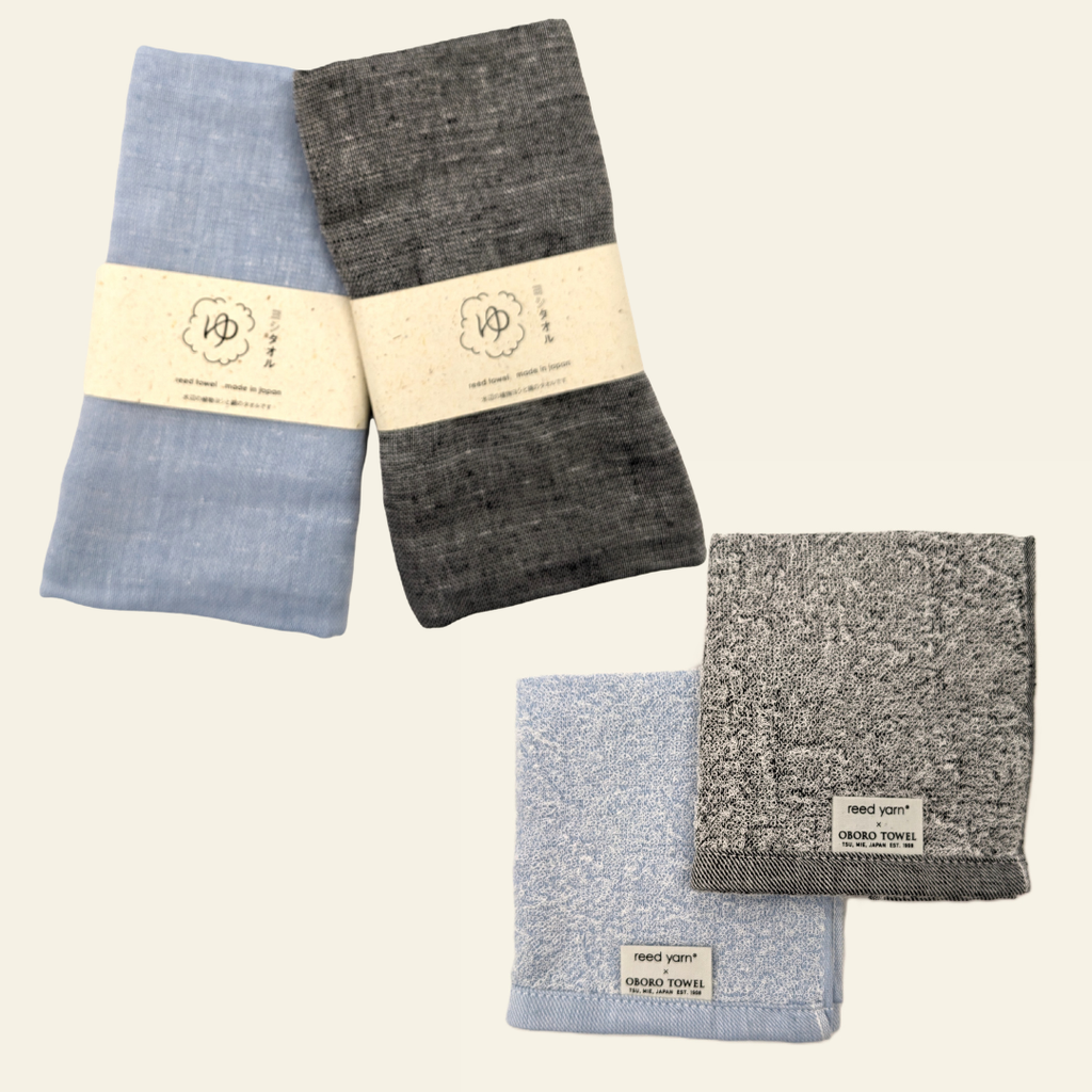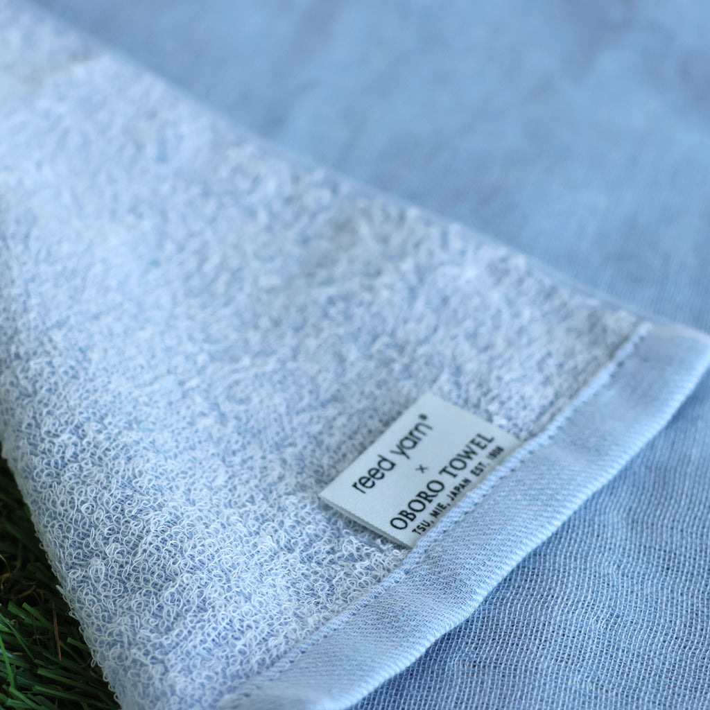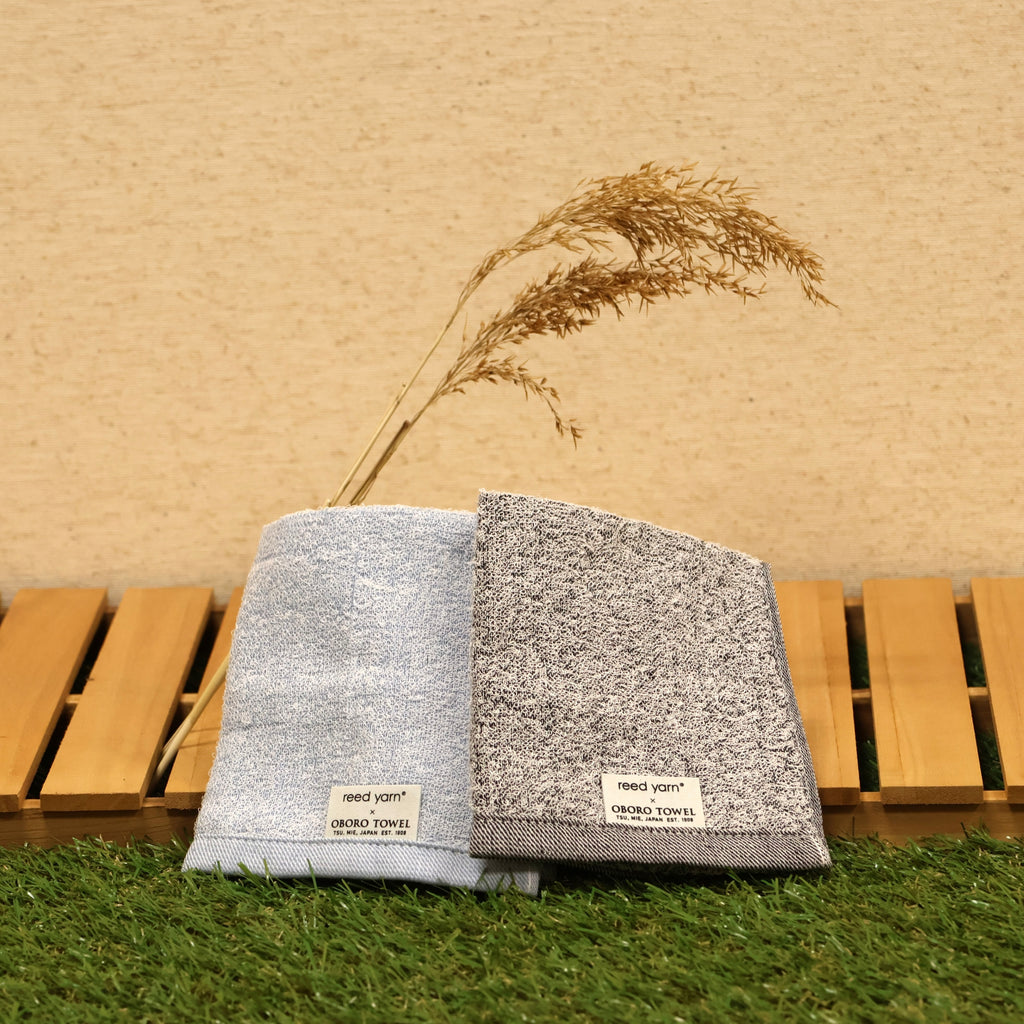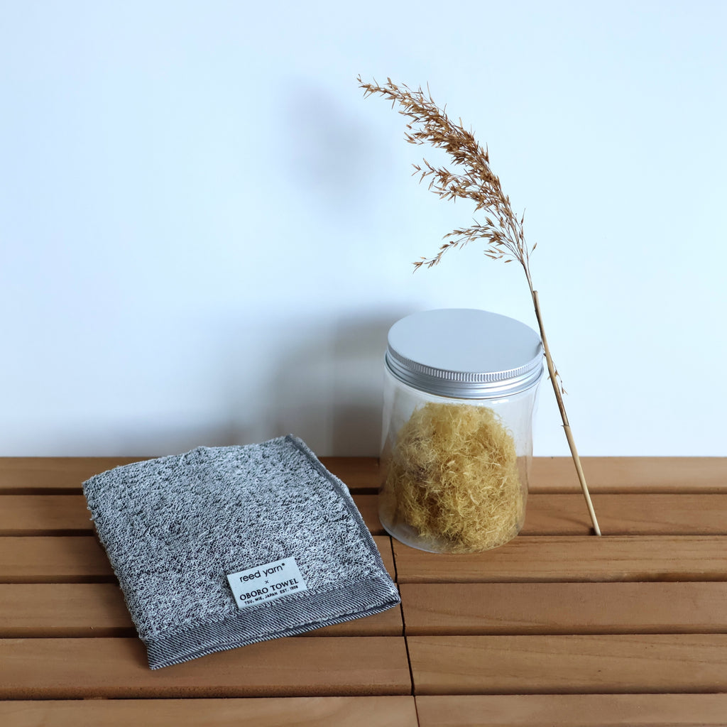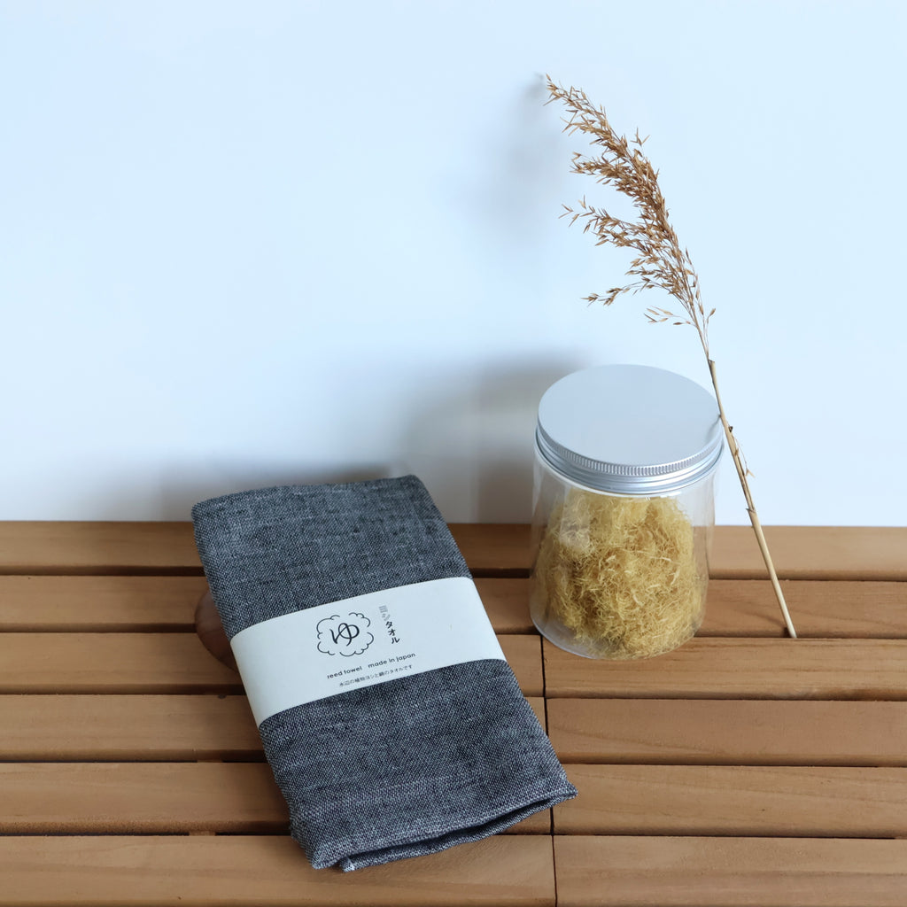 This towel is made using a unique blend of 30% Japanese reed fiber (Yoshi) and 70% cotton, woven together to create a soft and functional fabric.