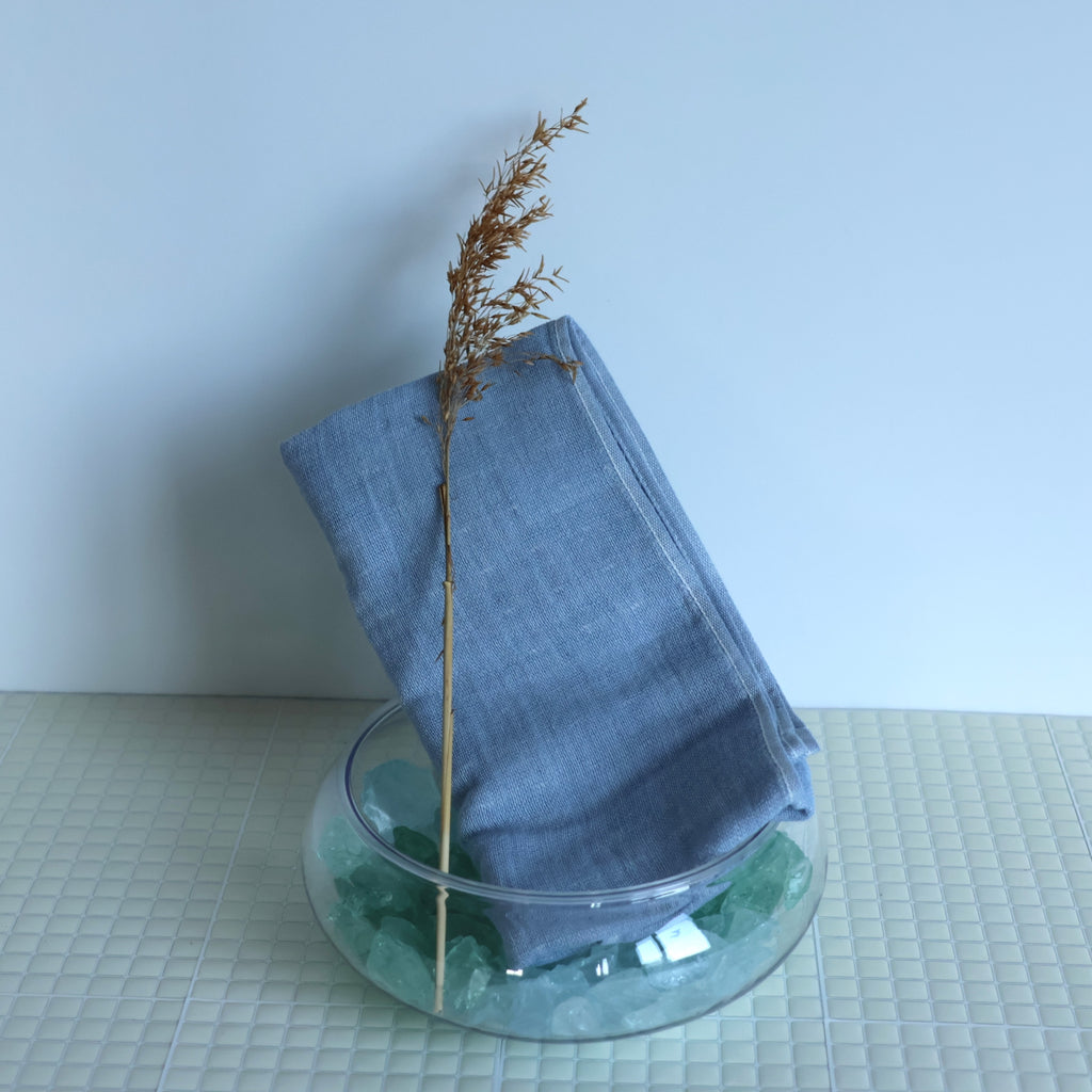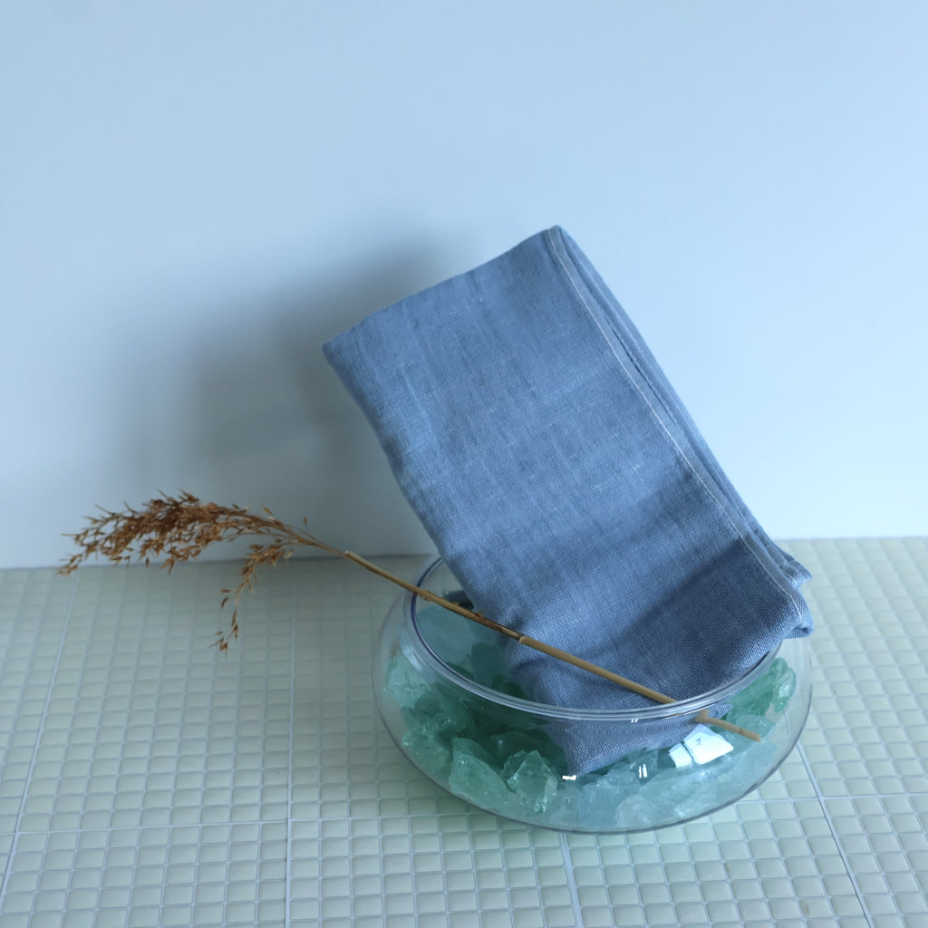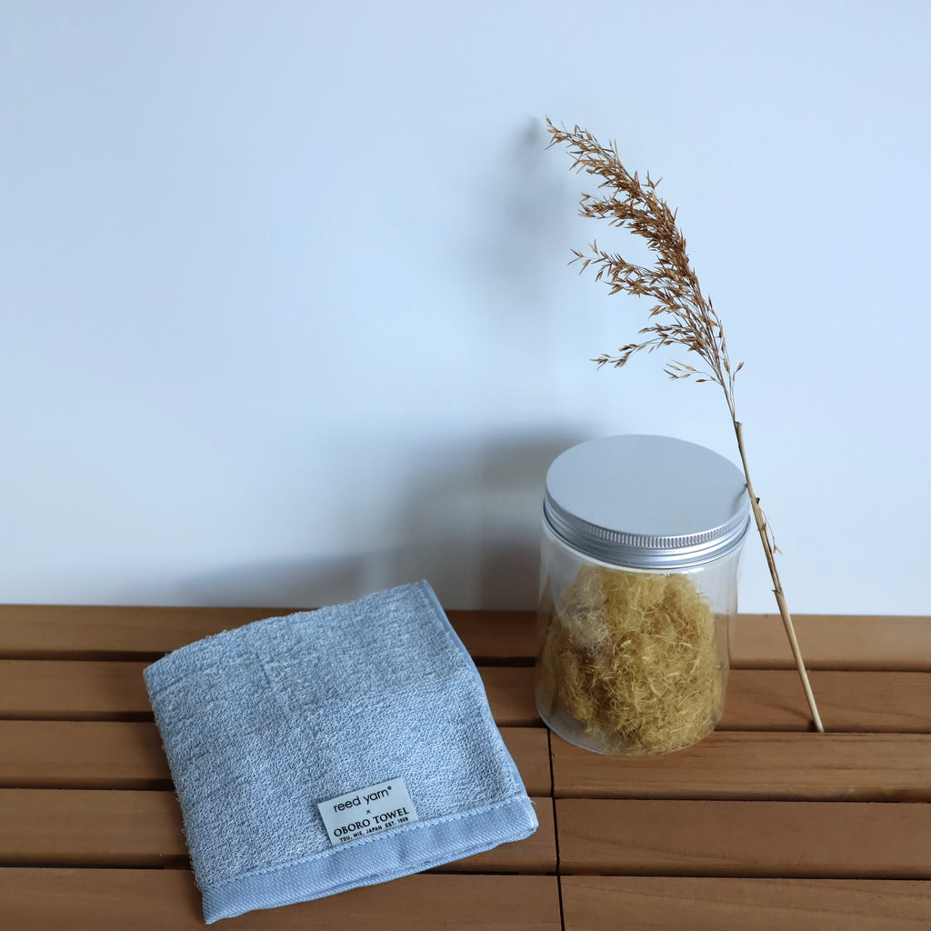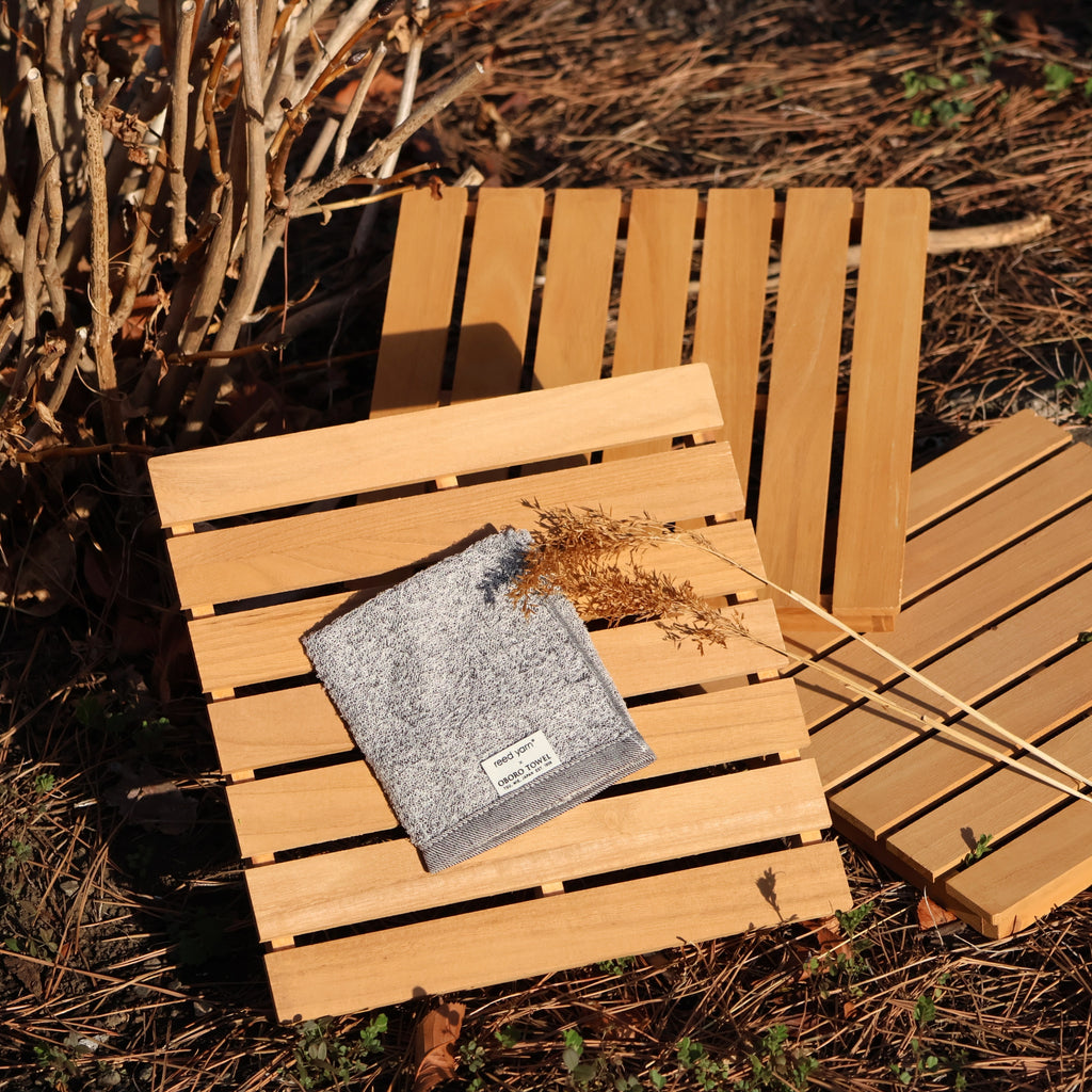 This towel is made using a unique blend of 30% Japanese reed fiber (Yoshi) and 70% cotton, woven together to create a soft and functional fabric.