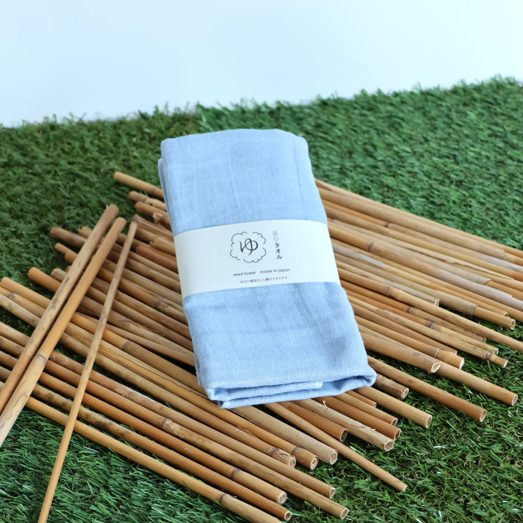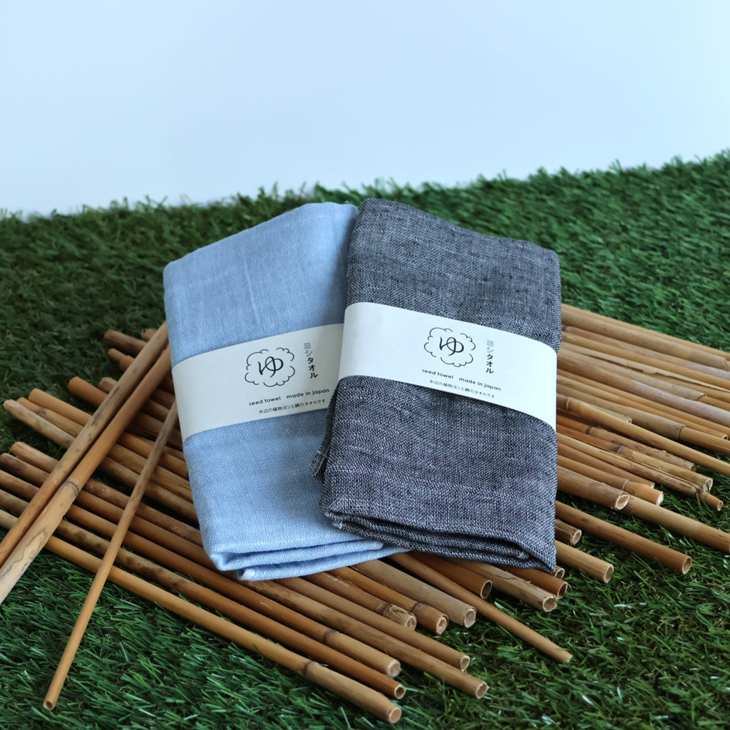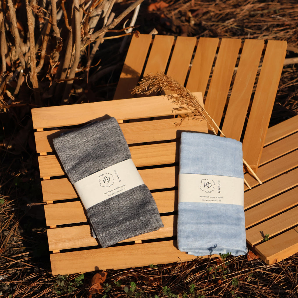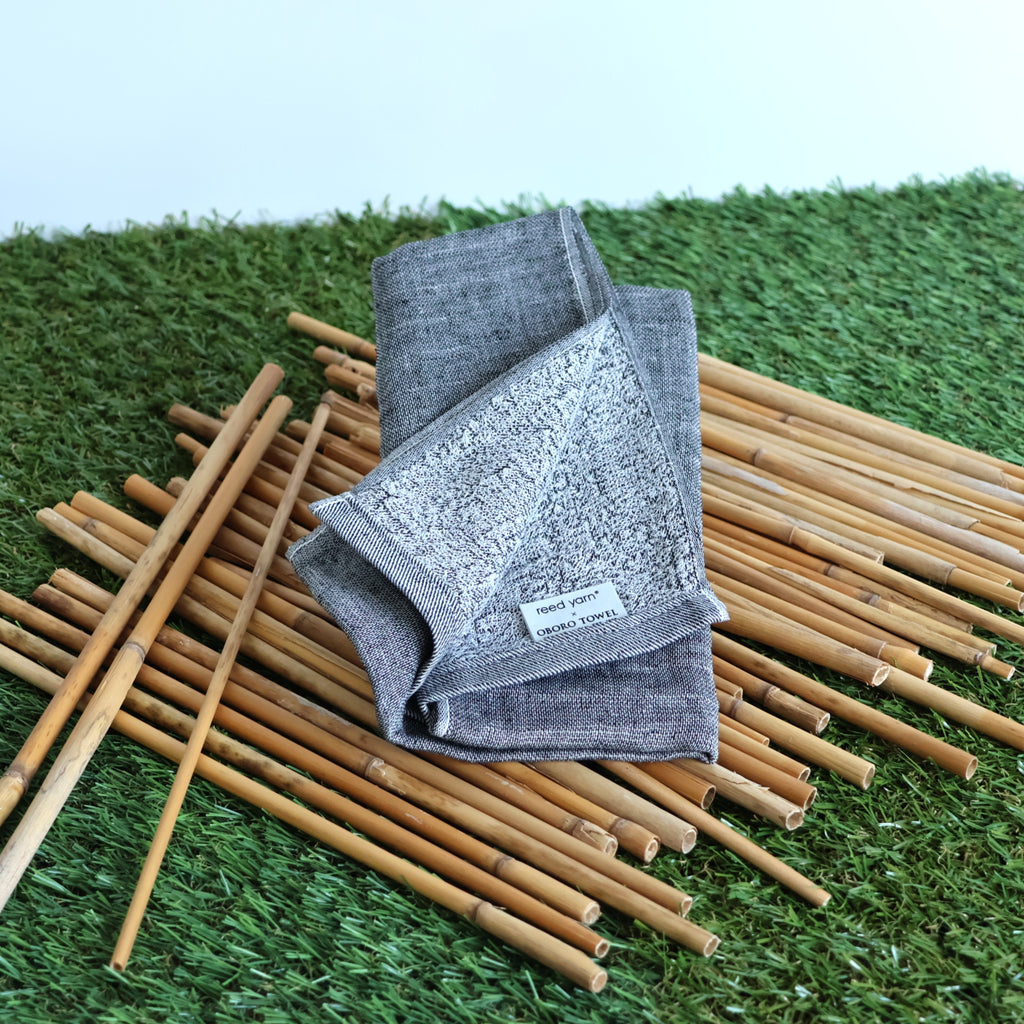 A sustainable towel made from Japanese reed plants growing near waterways