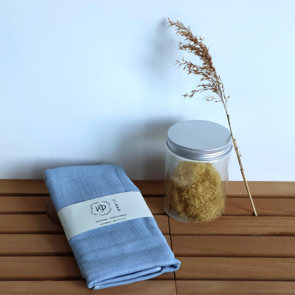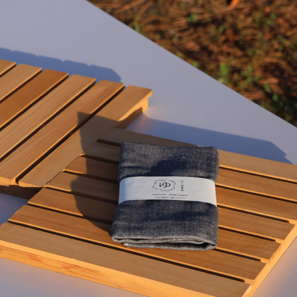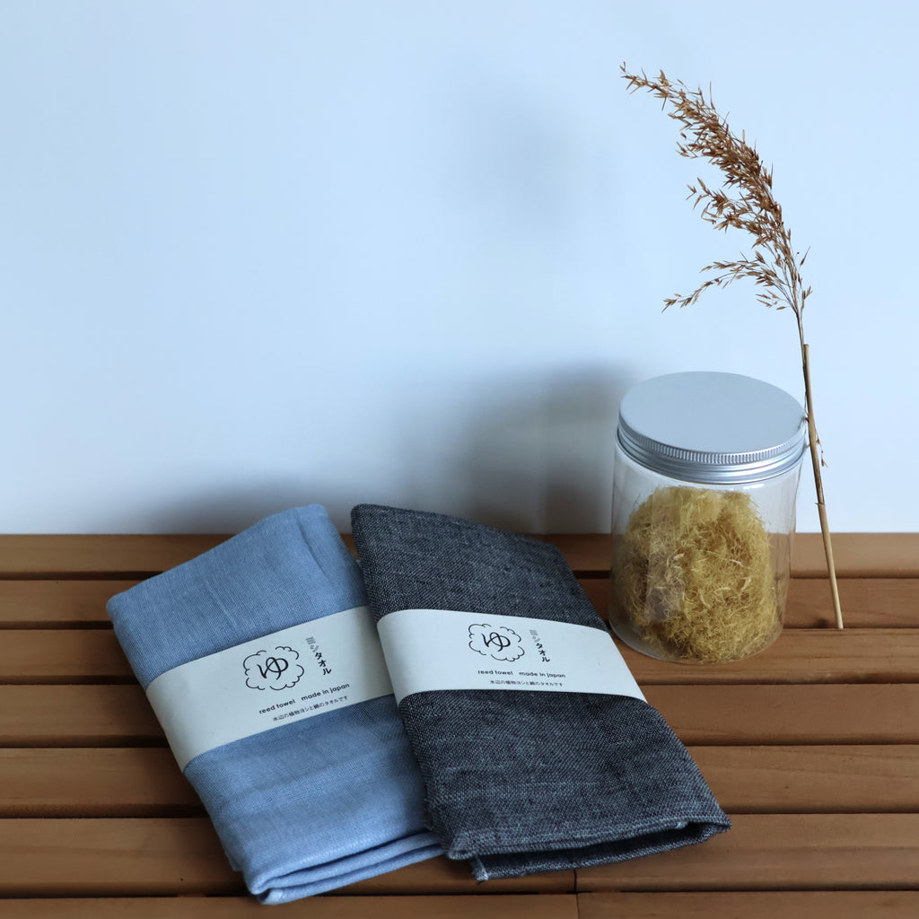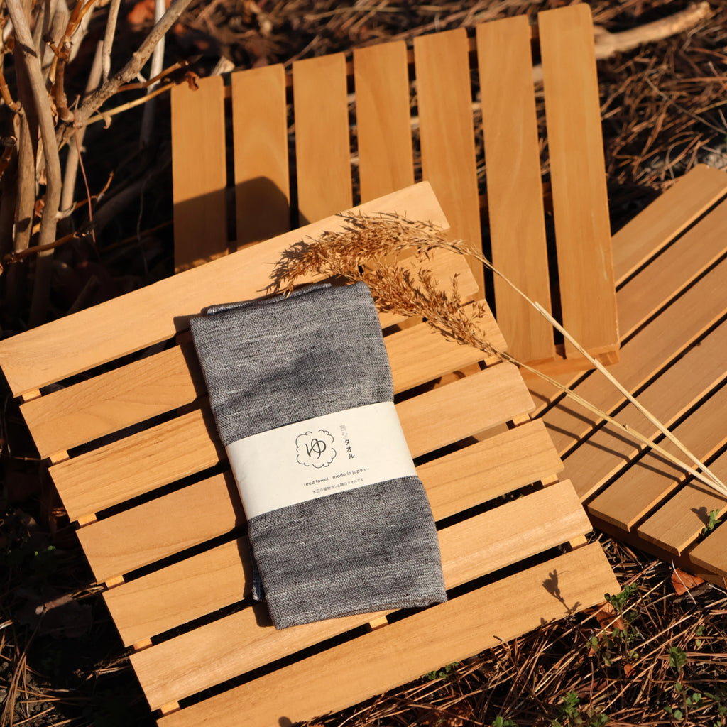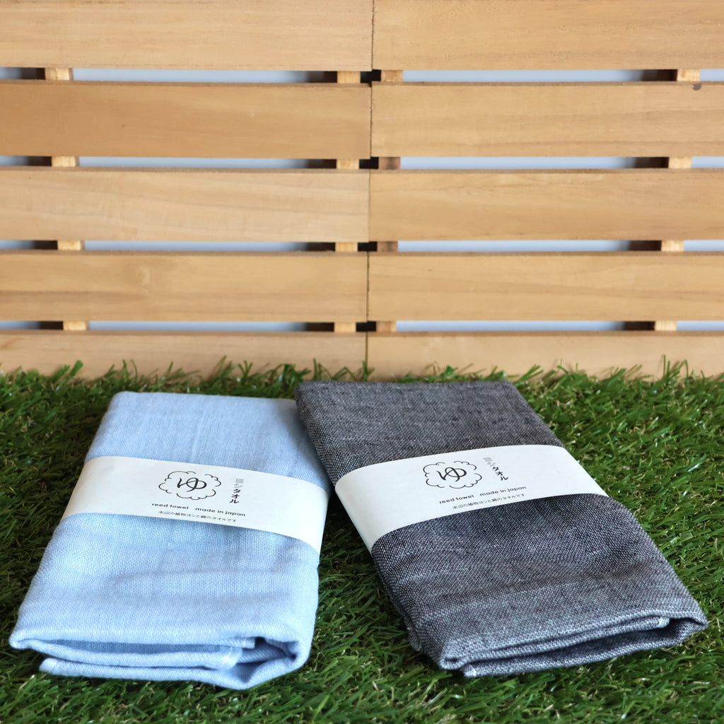 A sustainable towel made from Japanese reed plants growing near waterways