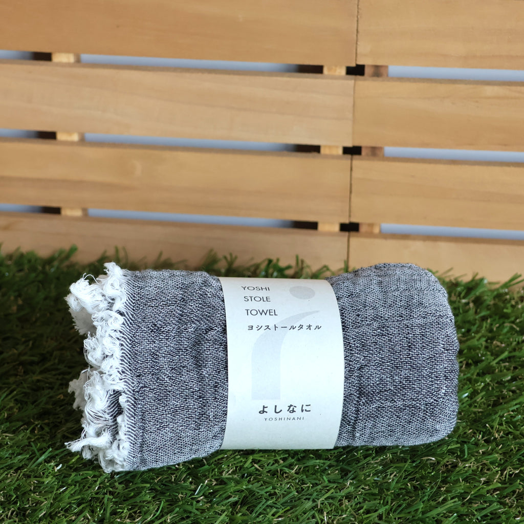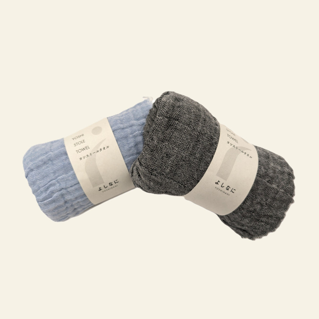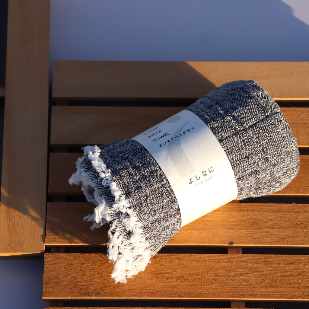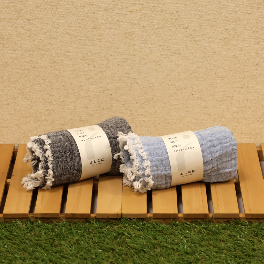 This stole-style towel is made using a special blended yarn that combines cotton and Japanese reed fiber (Yoshi).