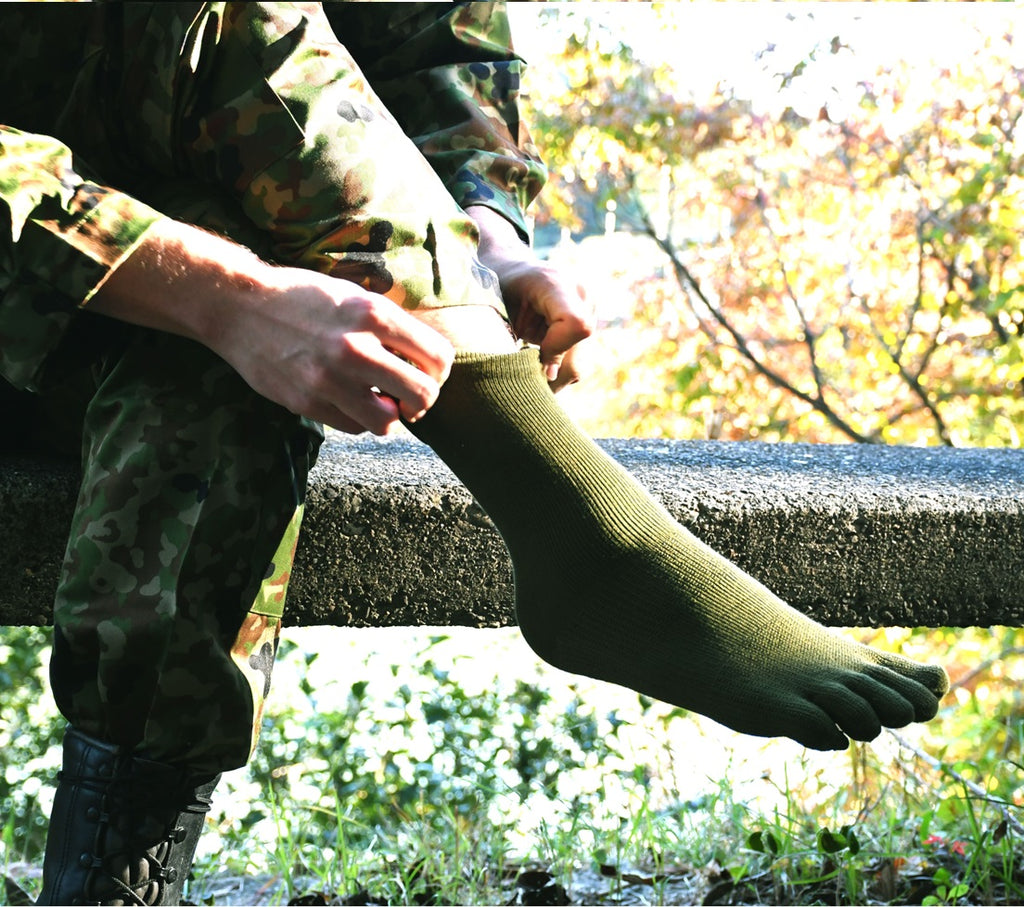 These sturdy five-toe socks are used by Japan's Self-Defense Forces during their 40 km long-distance training marches. They are the number one popular brand.