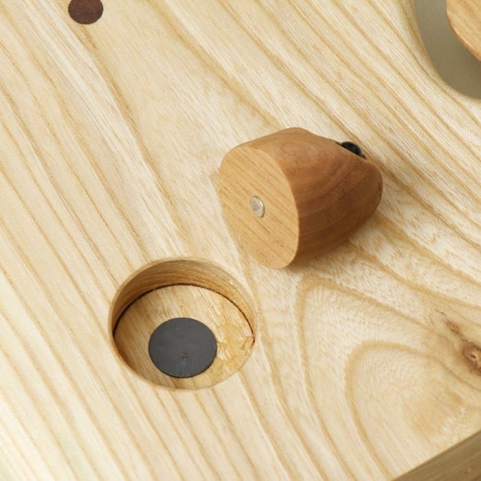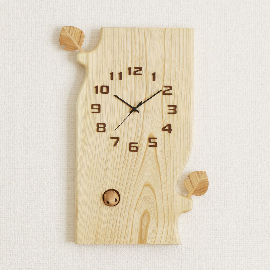 The highlight of this clock is the adorable flying squirrel peeking out from its tree hollow and looking down below. In Japan, the flying squirrel is a beloved forest animal known for its gentle and charming appearance. The squirrel is attached with a magnet, allowing you to freely change its direction and adjust how it faces—so you can customize its expression and position to suit your space.