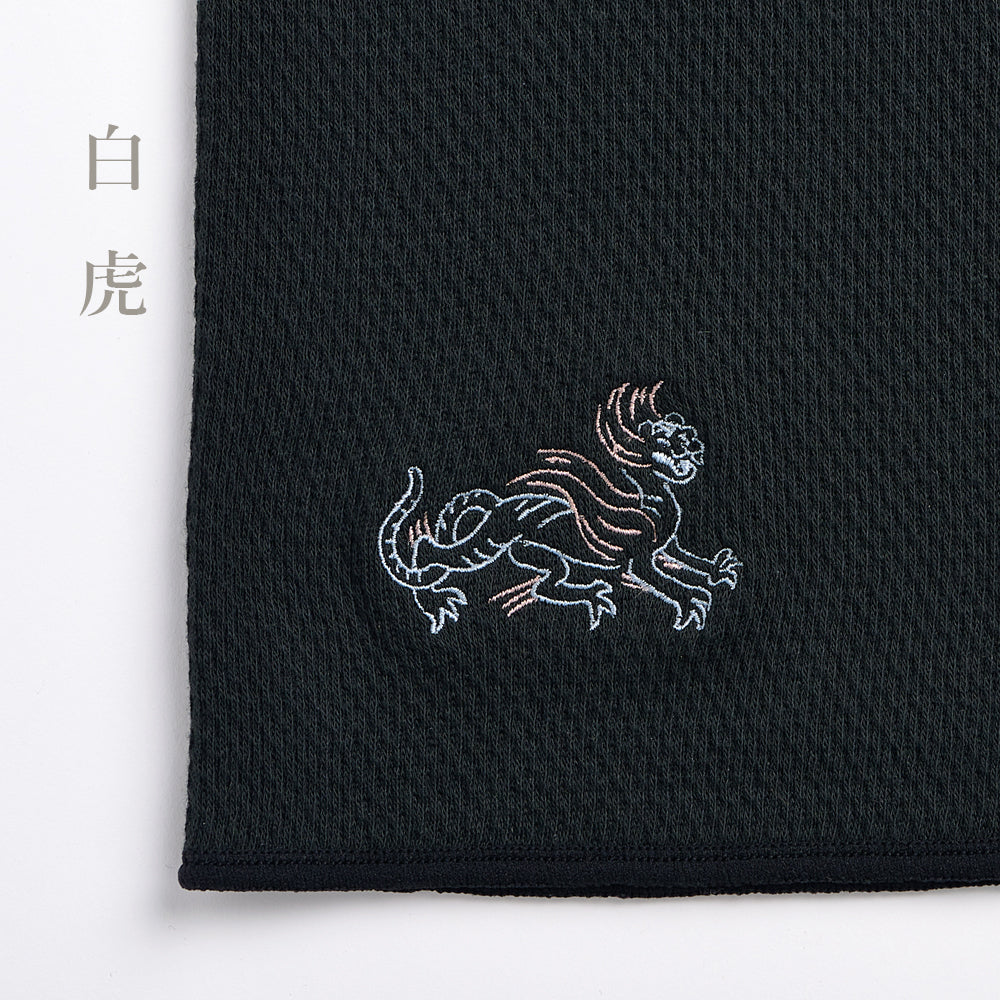 ●The embroidery pattern incorporates the 'Four Gods' depicted in the murals of the 'Kitora Tumulus' in Nara Prefecture. The fabric of the belly band is black, chosen in response to customer requests.