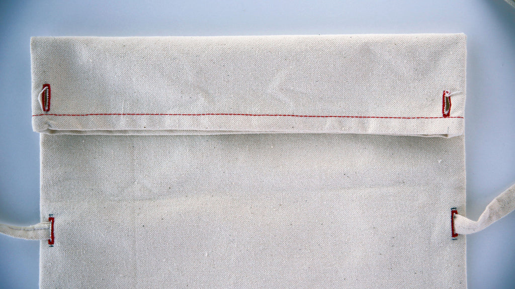 Attach the included cord through the buttonholes and tie to your preferred length. Four buttonholes let you adjust or fold the bag to create a smaller pouch.
