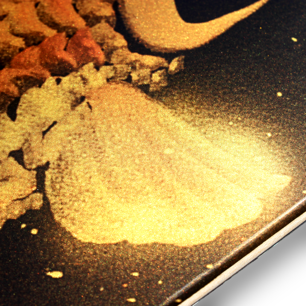 This is a professional-grade skateboard deck, built to a standard suitable for competitive use. It features an original shape design, carefully crafted for both performance and aesthetics. Made with high-quality 100% Canadian Maple wood, the deck is durable for skating and refined enough to be displayed as interior art. The surface finishing has been perfected to ensure a smooth and premium feel.