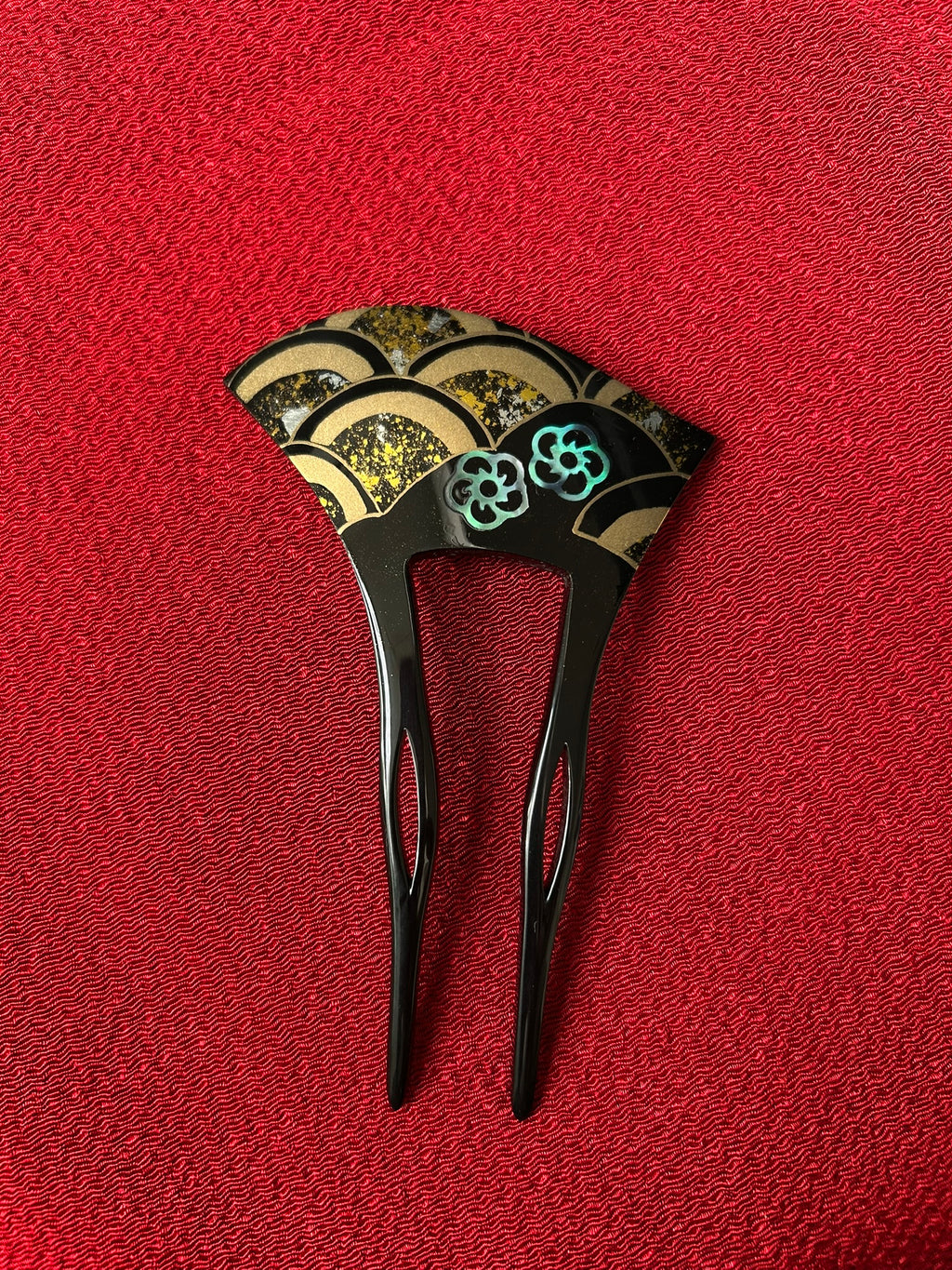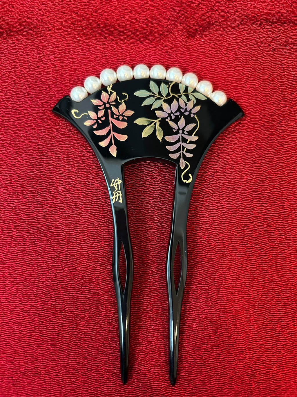 The comb features delicate and precise decorations crafted by skilled artisans, reflecting the refined aesthetic of Japanese traditional accessories.