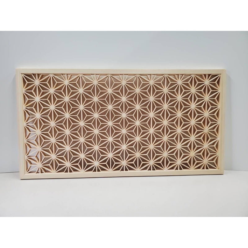 Asanoha Kumiko Panel Made of 100% Japanese Hinoki Cypress (W636 × H327 × D16mm) - Traditional Japanese Craftsmanship - Kurumira Shop
