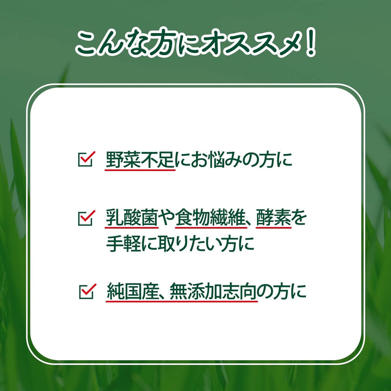Recommended For: Those experiencing vegetable shortages, individuals seeking an easy way to consume lactic acid bacteria, dietary fiber, and enzymes, and people who prefer pure domestic and additive-free products.