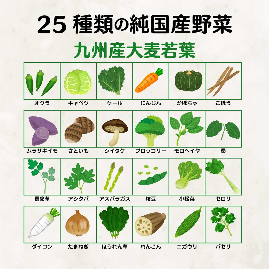 Concentrated Blend of 25 Vegetables: This powder contains a blend of 25 types of vegetables, including cabbage, kale, carrots, pumpkin, and lemon, all sourced from pure domestic origins in Japan. Ideal for those looking to easily increase their vegetable intake.